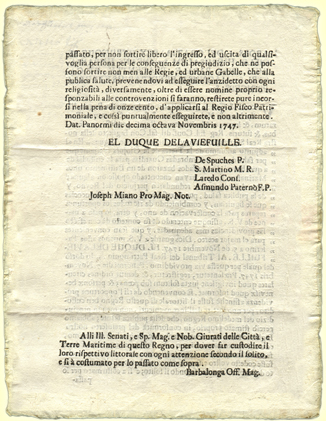 originale documento spagnolo del nov. 1747